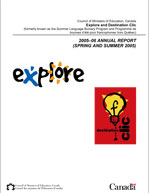 Through Explore and Destination Clic, bursaries are granted to students across Canada to enable them to enrol in five-week immersion courses in either French or English at accredited postsecondary institutions. The programs are funded by the Department of Canadian Heritage and administered by the provinces and territories, in conjunction with CMEC. The report for 2005-06 looks at the organization and administration of the programs, financial and statistical data, and evaluations by multiple stakeholders.